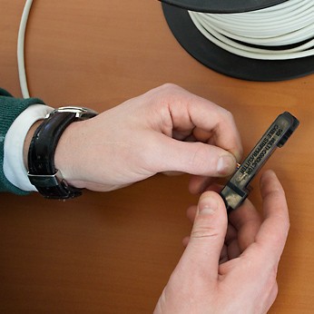 Nutzen Sie den Kabelstripper, um das Netzwerkkabel soweit abzumanteln, dass die kleinen Adern sichtbar sind.